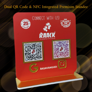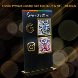 Custom Black Smart Standees with 2 QR Codes + NFC Enabled