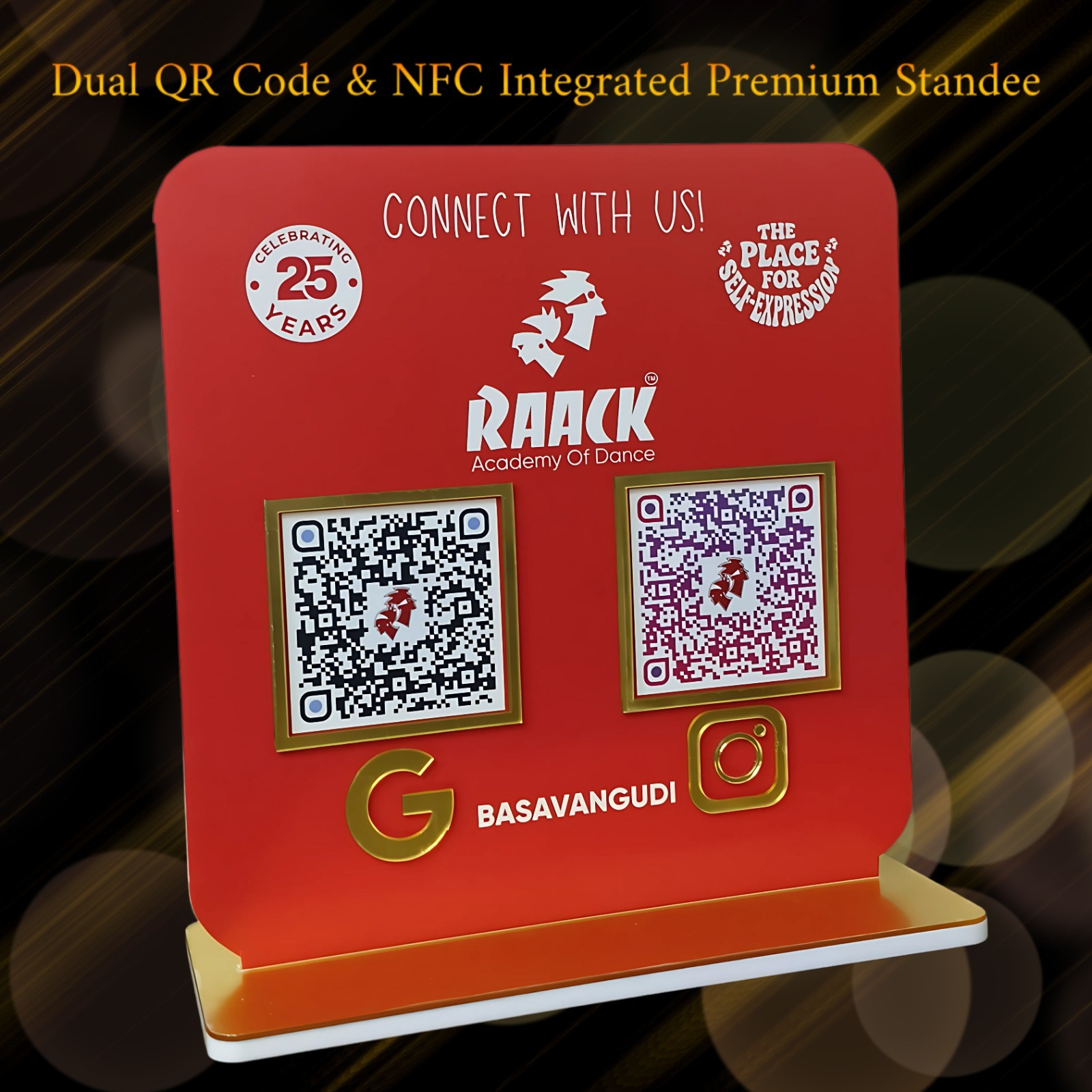 Skyrocket your Online Reputation with NFC Premium Business Standee. Simply tap any NFC-enabled smart phone or scan a QR code to share your beautiful digital profile with your acquaintances using innovative NFC & QR code technology.